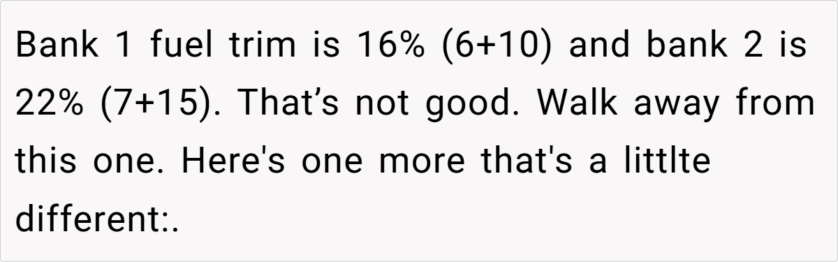 A few comments also delved into the nuances of fuel trim data, with users explaining how slight variances can signal underlying issues. They recommended not only learning to use the OBD scanner but also understanding the story those numbers tell about a car’s health. Such shared experiences remind us that while buying a used car can be risky, knowledge is the best defense against buyer’s remorse.