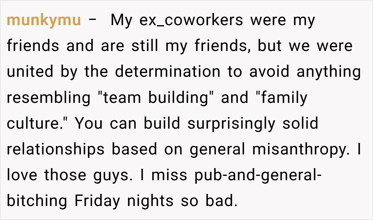 ‘LPT: No matter how much your workplace pushes “team building” and “family culture” – remember, they’re not your friends and it’s still a workplace.’