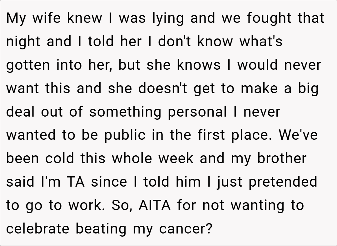 In our social media-driven world, where life’s moments both big and small are increasingly shared and celebrated publicly, what happens when someone prefers to keep their personal battles private? A recent story that’s sparked intense debate online centers on a man who walked away from his own cancer remission celebration – a party he never wanted and never asked for. The incident raises fascinating questions about privacy, personal boundaries, and how different people process and cope with health challenges.