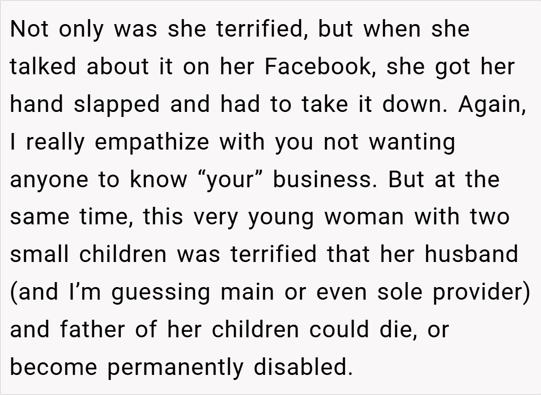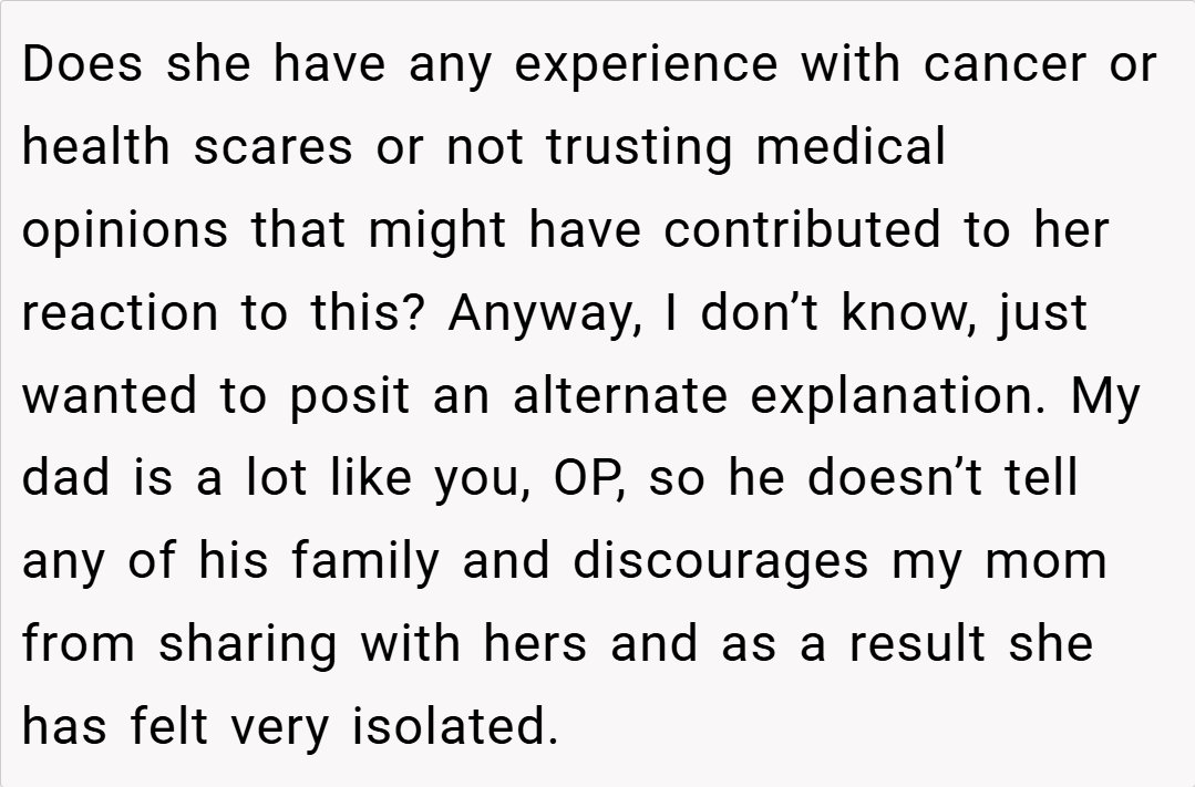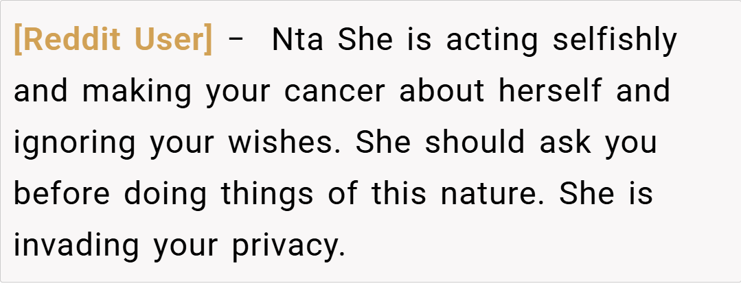 This situation highlights several important psychological and social dynamics that deserve careful consideration. (Dr. Pauline Boss), Professor Emeritus at the University of Minnesota and expert in family stress, notes: “Different people process illness and recovery in fundamentally different ways. While some find comfort in community support, others need privacy to maintain their sense of control and normalcy.”