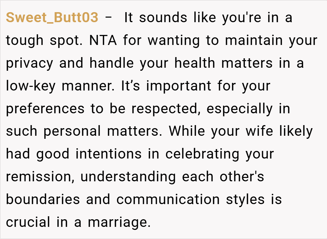 This situation raises important questions about personal boundaries and how we process health challenges in the age of social media. When does celebration become invasion? How do we balance one person’s need for privacy with another’s need to express relief and joy? Share your thoughts: How would you handle a loved one who wants to process a health crisis differently than you do?