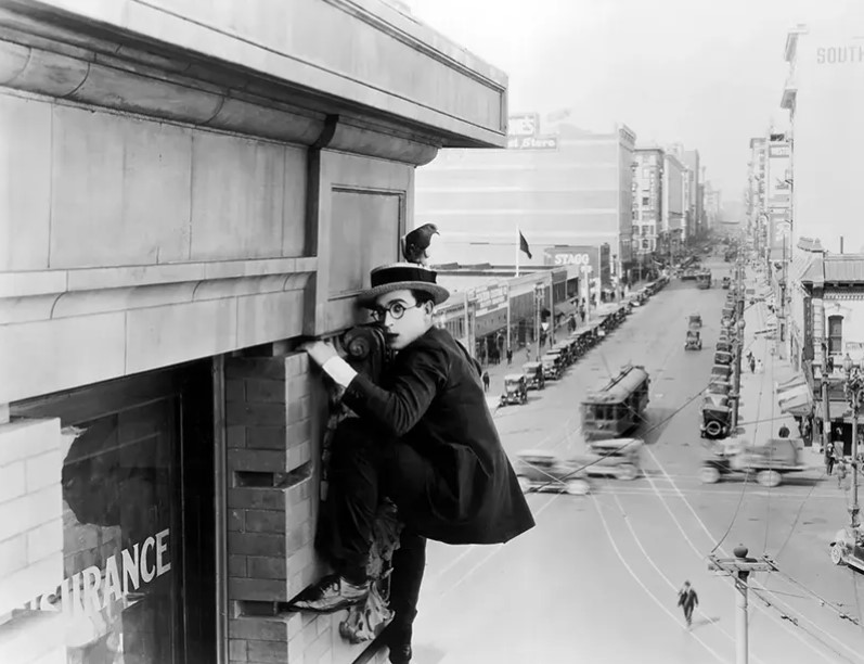 During filming, some of Harold Lloyd’s most iconic moments in Safety Last! were improvised, and though he took on many of the stunts himself, he occasionally relied on a stunt double for specific scenes.
