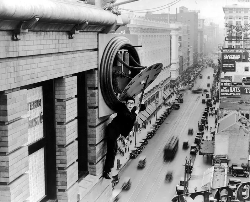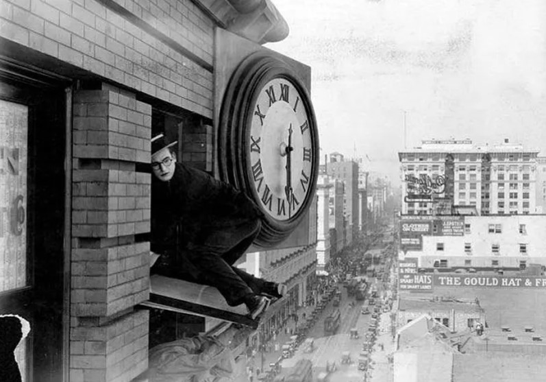 At the time, few special effects were available, and techniques like mirrors, double exposure, glass shots, or hanging miniatures were not used in this sequence. Instead, the scene relied on practical effects and clever camera work to create the illusion of Lloyd’s daring climb.