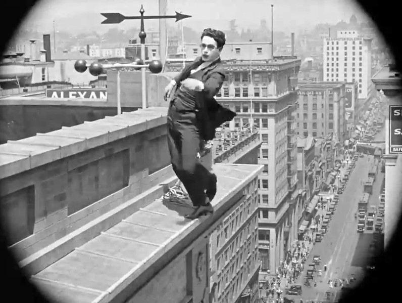 Safety Last! (1923) is a classic silent romantic comedy that features the remarkable Harold Lloyd. The image of Harold Lloyd hanging desperately from the hands of a skyscraper clock with traffic rushing below is one of the greatest icons in the cinematic industry.