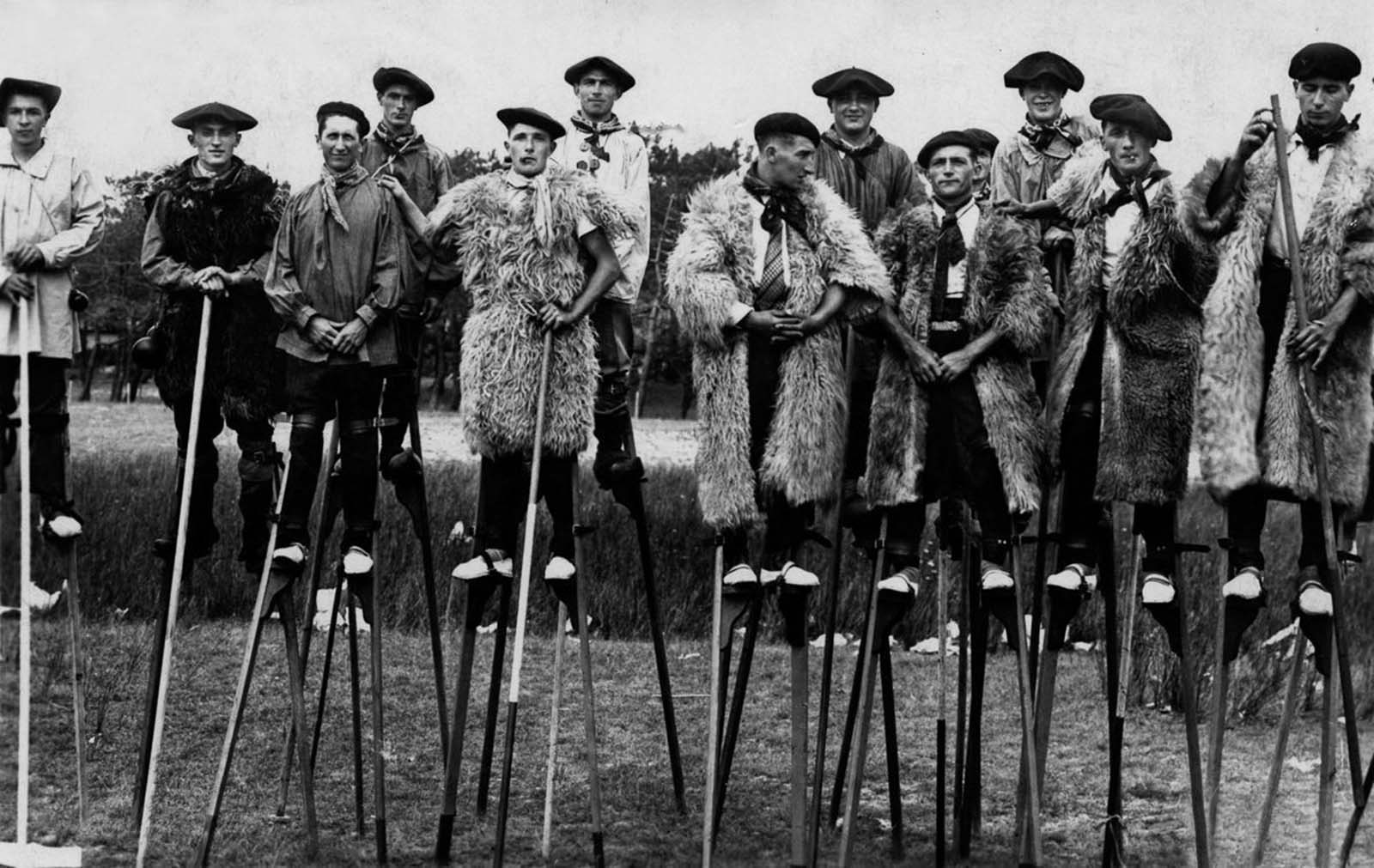 In the past, the region of Landes in southwestern France was known for its marshy, flat landscape, making travel difficult. With few proper roads, shepherds came up with a practical and creative solution—they used stilts to get around. This unusual mode of transportation was widely popular in the beginning of the 20th century.