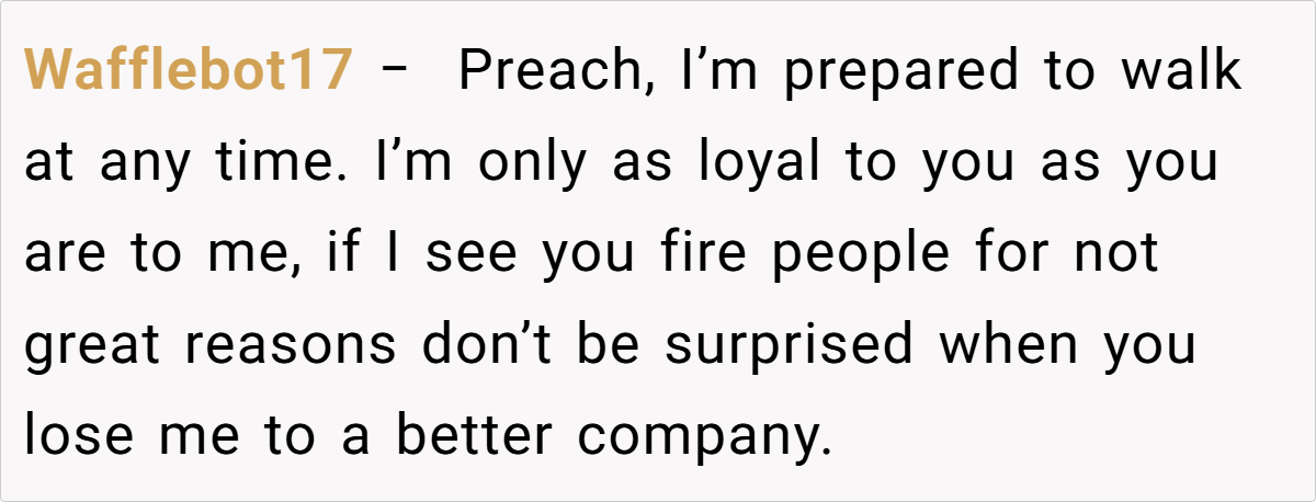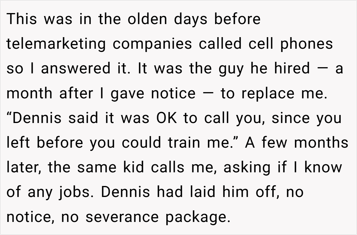 Letting your employer down may seem like a minor decision, yet this story exemplifies a far larger issue in modern workplaces. The post illustrates how an employer’s attempt to guilt-trip and mistreat an employee can quickly unravel into a cascade of unexpected consequences. When trust is broken, employees must remain vigilant and proactive. Such experiences serve as a wake-up call for anyone who values mutual respect and fairness in their career.