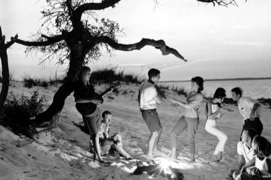 15. Enjoying a casual evening by the beach, dancing and playing guitar around a small fire