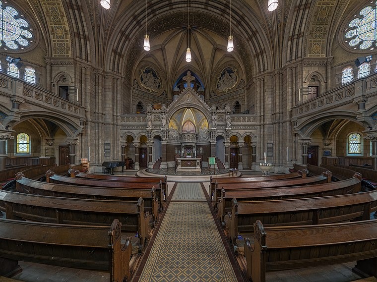 With a seating capacity of 1,100, it combines Romanesque and Gothic styles.