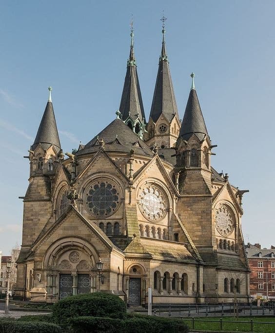 The Ringkirche (The Ring Church), a Romanesque Revival masterpiece, stands proudly at the intersection of the central districts of Westend and Rheingauviertel in Wiesbaden, Germany.