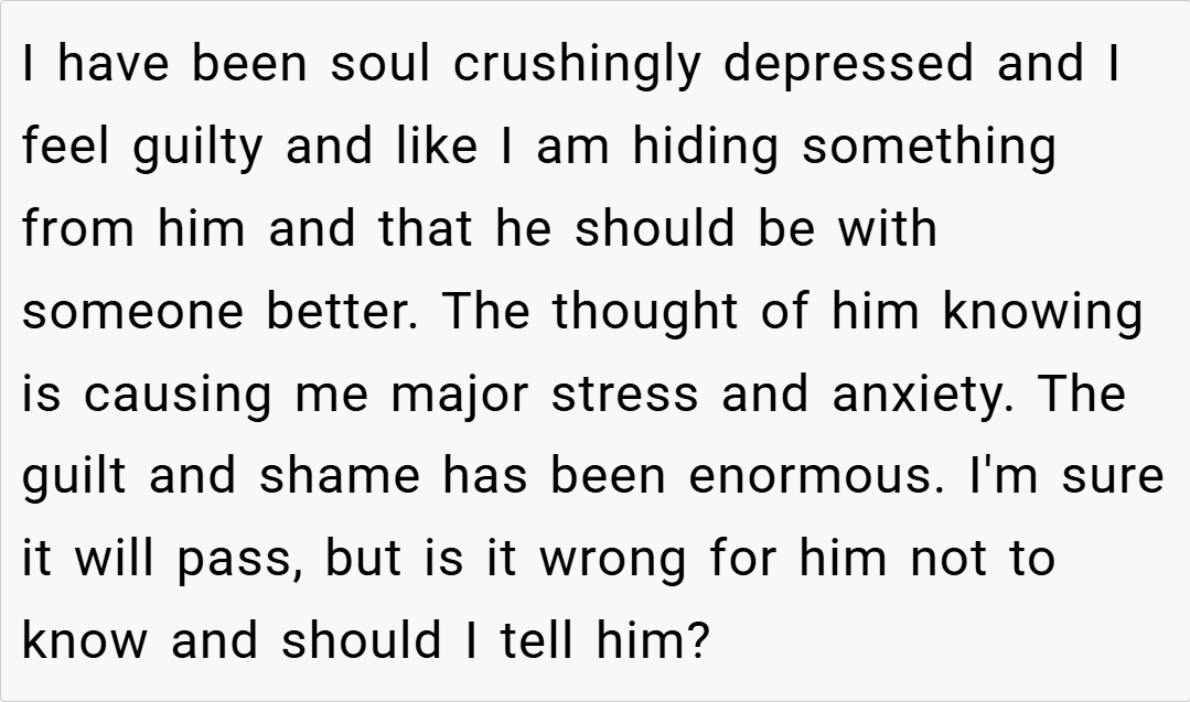 ‘ Secret is killing me and I’m trying to decide if Iq should tell my husband’