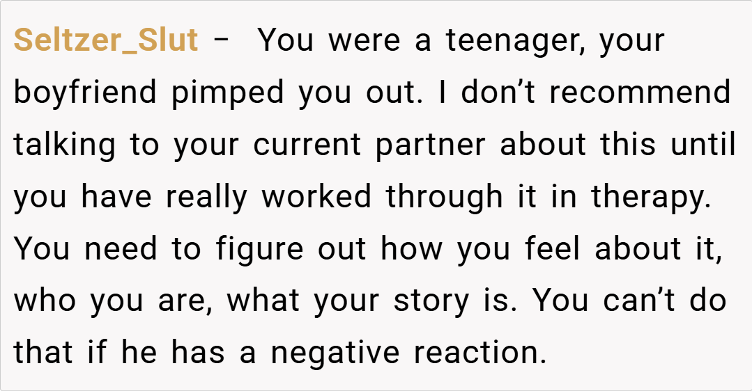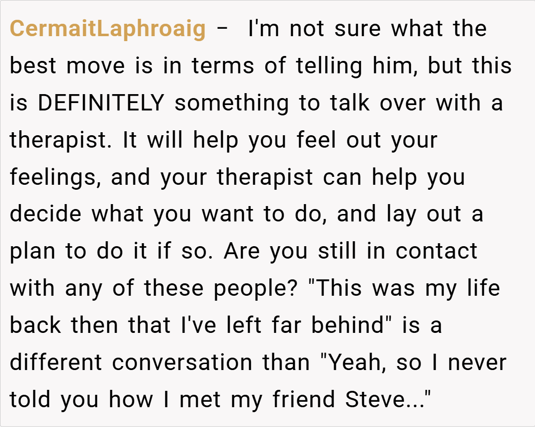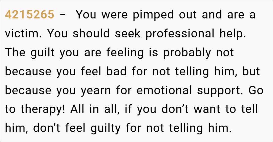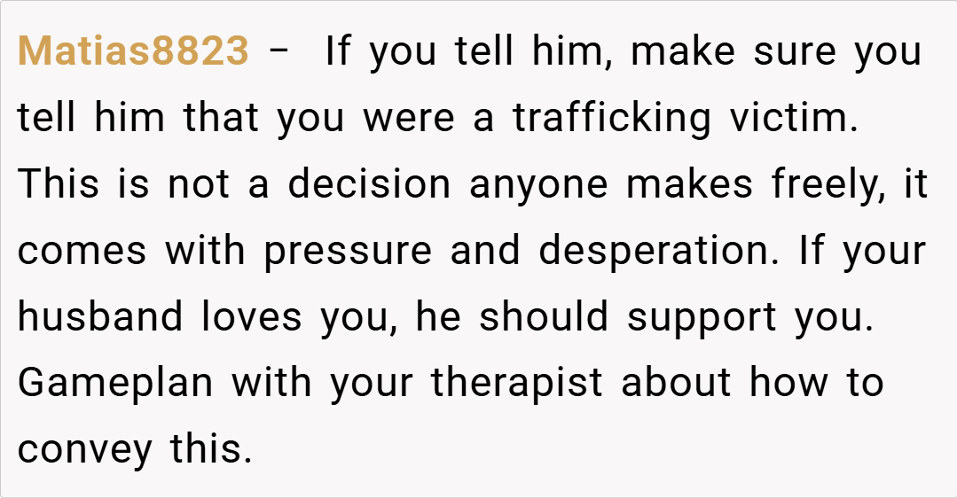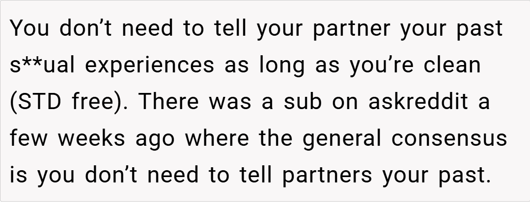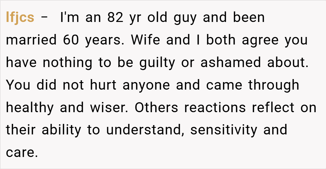 The Reddit community is deeply divided on this issue. Many commenters empathize with the poster’s crushing guilt and anxiety, arguing that living with a secret is unsustainable in a loving relationship. One popular comment stated, “If the secret is eating away at you, sharing it—even if it risks your current happiness—might be the first step toward true healing.” Others, however, caution that disclosing such a past could shatter the trust you’ve built, suggesting that some secrets might be best left buried. A few even recommended speaking with a professional counselor to guide you through your decision. Despite the varying perspectives, the consensus is that your well‑being is paramount, and any decision should be made with care and support.