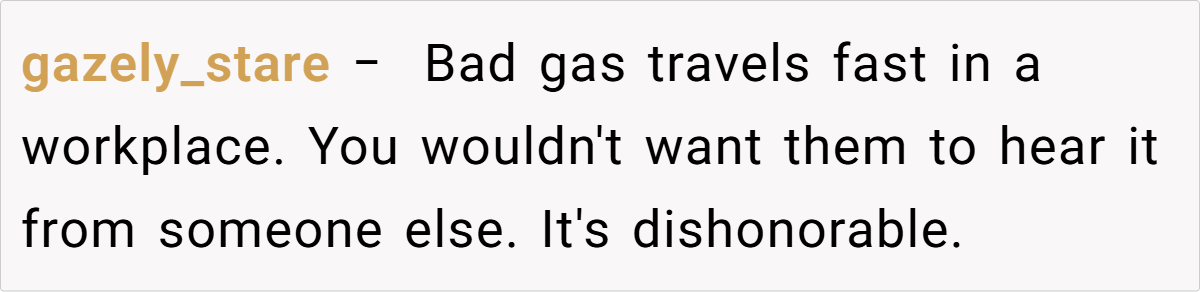 These remarks, ranging from playful compliments to stark warnings about the dangers of gossip, mirror the real-world struggles of navigating office politics. While the community offers amusing and sometimes biting insights, they also highlight a universal truth: in the workplace, what you say behind closed doors can echo far beyond your expectations.