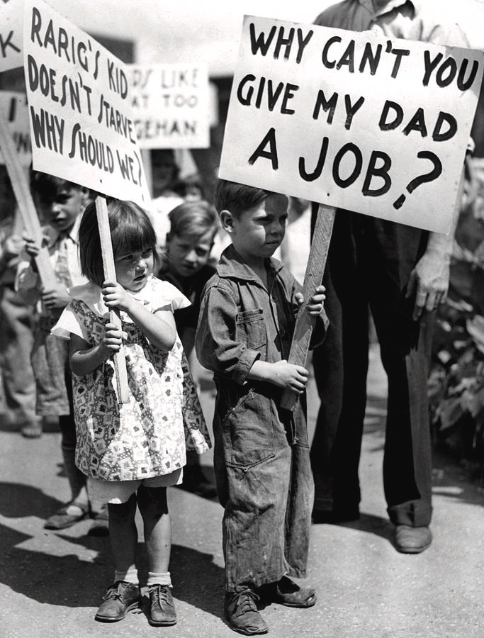 Schools closed, and children like those in the iconic 1937 photo by Daniel Hagerman were directly affected, sometimes participating in protests to advocate for their families.