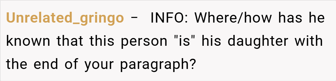 Relationship expert Dr. John Gottman concurs, stating, “Trust is the cornerstone of any relationship. When potentially life-changing information emerges, like the claim of an alleged daughter, it’s essential to verify facts before altering the emotional dynamics of a relationship.