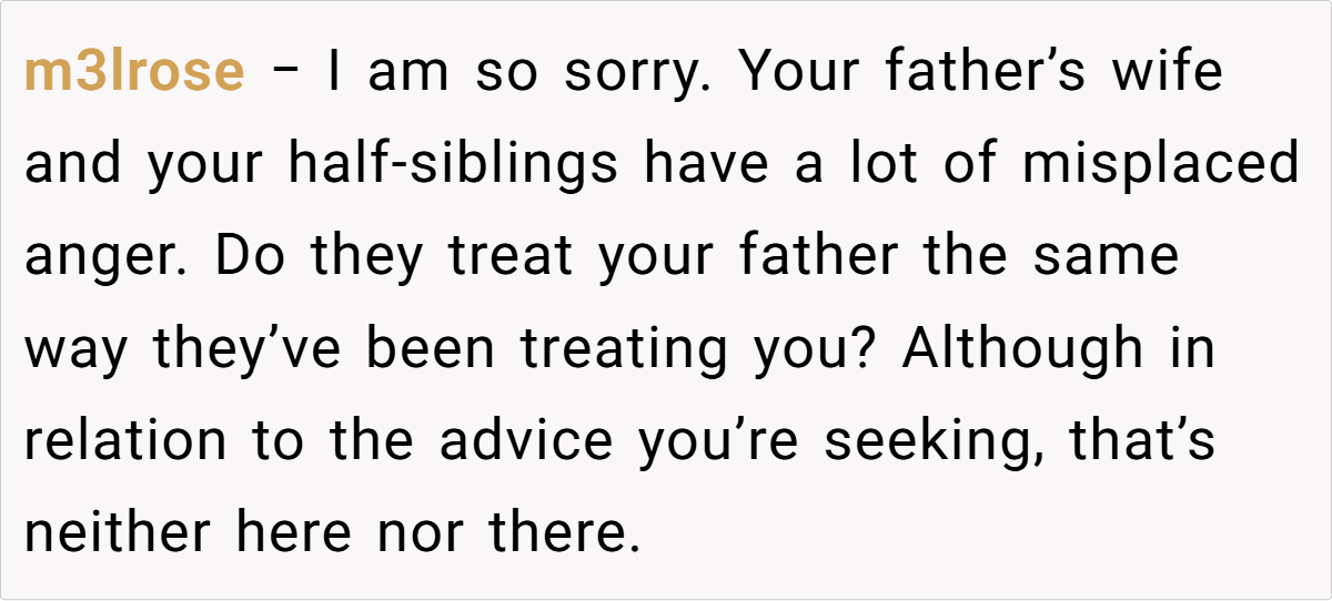 The father’s decision to keep the teen out of foster care demonstrates a protective instinct. Nevertheless, it is inadequate if the residence remains hostile. Experts note that unresolved resentments often spark prolonged conflict within blended families. A minor’s wellness can deteriorate significantly, fueling anxiety and deep loneliness. I, considering Dr. Malec’s approach, see that family therapy might mediate these tensions, especially when animosity runs high. Parents must focus on healing, not perpetuating blame.