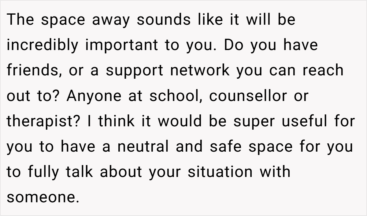 Openly discussing feasible alternatives is central to building workable solutions. Child welfare advocates, including the American Academy of Child & Adolescent Psychiatry (https://www.aacap.org/), recommend scheduling regular check-ins with neutral facilitators or school counselors. These sessions create a safe place to raise grievances and take tangible steps forward. If the adolescent keeps living in an uncomfortable atmosphere, mental health can decline. Alternatively, temporarily residing with trusted adults can enhance emotional stability while parental connections recover.