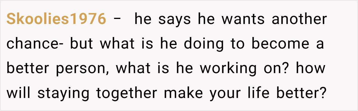 Her insight is particularly relevant here. The husband’s continual disregard for the boundaries they once agreed upon isn’t a simple mistake; it’s an ongoing erosion of trust and respect. Each lie and hurtful comment chips away at the foundation of their bond, hinting at deeper insecurities and unresolved issues that are unlikely to be healed by forgiveness alone. This reality shows that when one partner consistently dismisses the other’s feelings—especially after multiple chances—the damage isn’t accidental; it’s systematic.