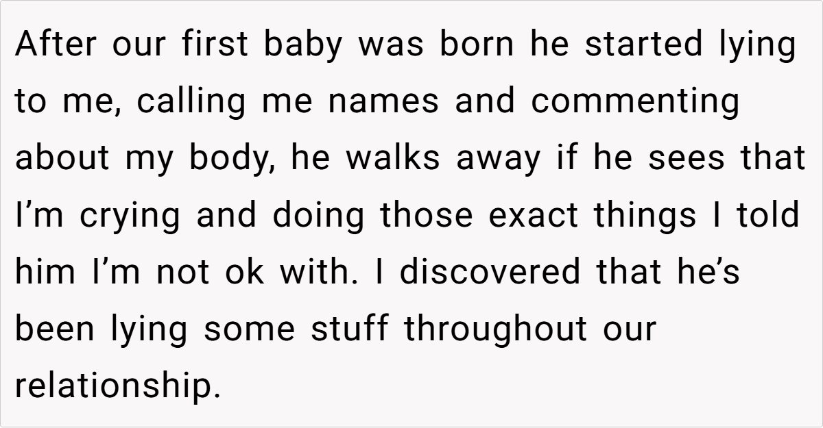 When a relationship that once radiated hope and excitement slowly crumbles under the weight of repeated betrayals, it’s not just a series of isolated missteps—it’s a pattern that signals deep emotional damage. In this story, the woman’s initial joy of love and family life has been steadily undermined by her husband’s actions: he breaks promises, lies about past affairs, and even insults her physical appearance by comparing her unfavorably to other women. As Emily Fiorelli, LCSW at Manhattan Wellness, wisely notes, “Red flags are warning signs that tell us to pause, take a step back, and reconsider connecting with someone.”