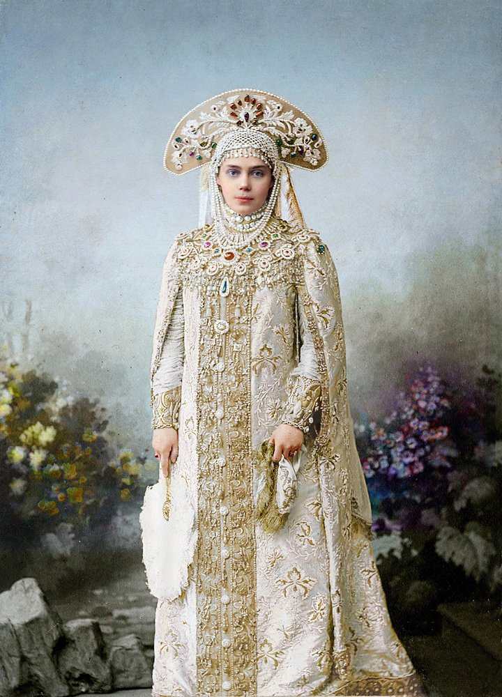 Empress Alexandra Fedorovna, pictured here, appeared at the ball dressed as Empress Maria Ilinichna, the first wife of Tsar Alexey Mikhailovich.