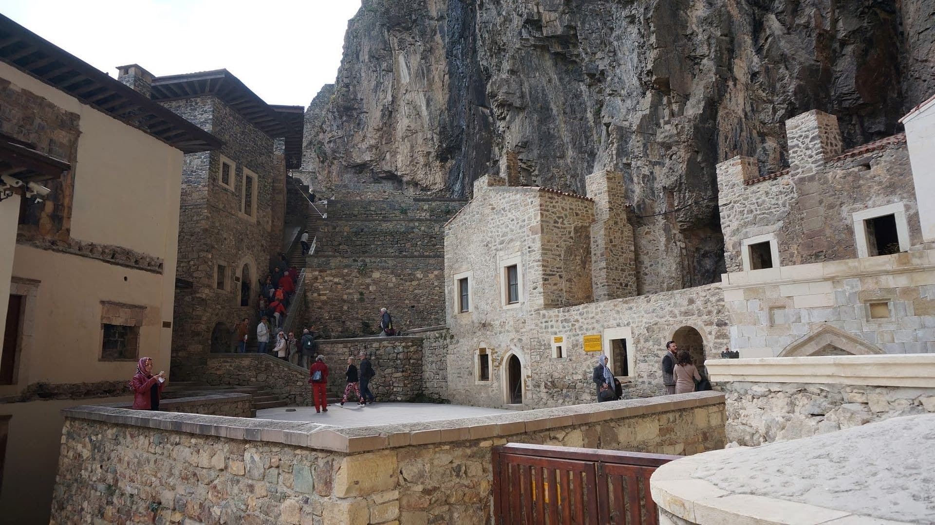 The Sumela Monastery complex includes the Rock Church, several chapels, kitchens, student rooms, a guesthouse, a library, and a sacred spring.