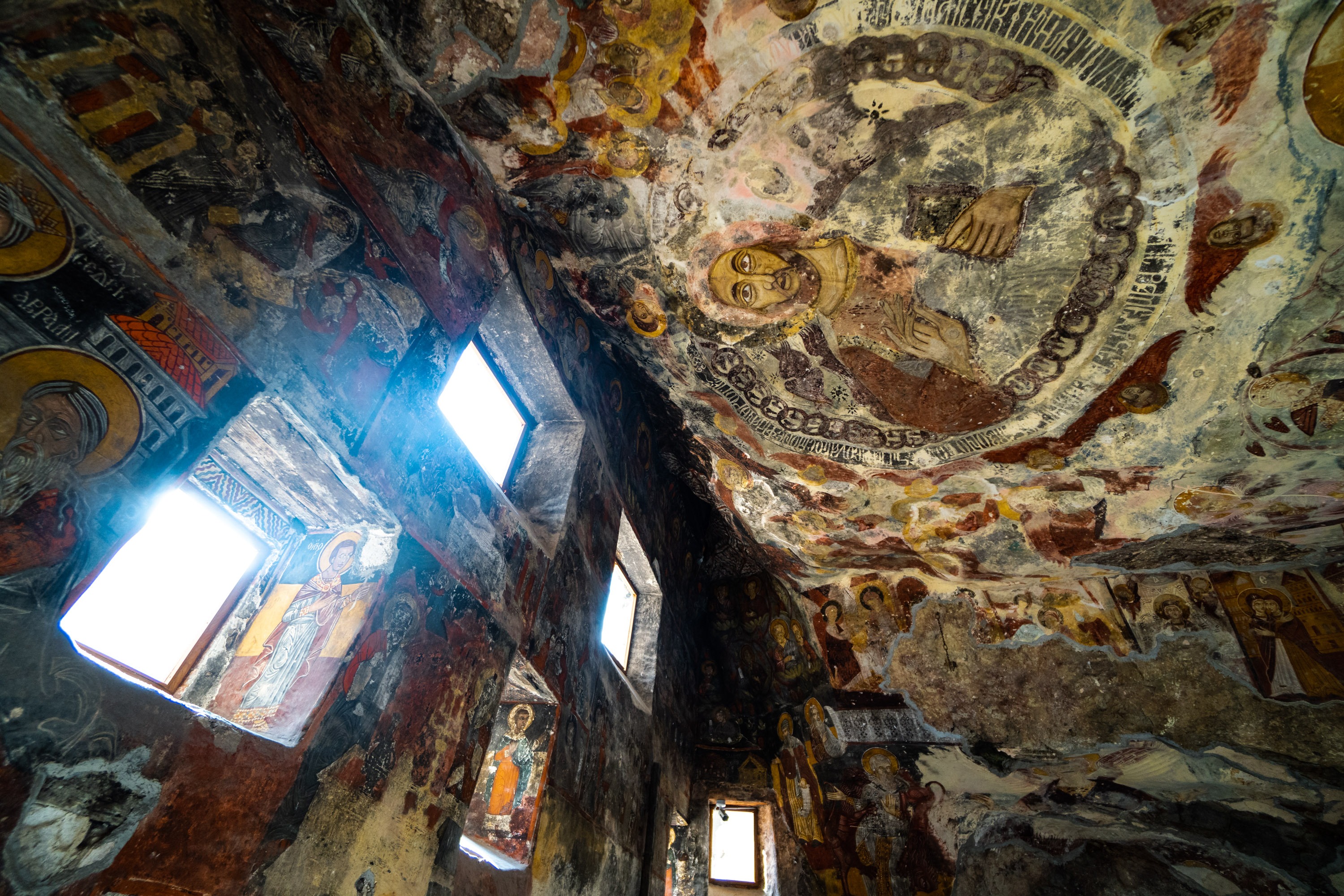 Its walls, both interior and exterior are adorned with frescoes depicting biblical scenes from the lives of Jesus and the Virgin Mary.