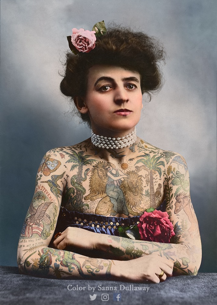 She and her husband, Gus Wagner, were heavily tattooed and became popular attractions in the circus world. They could earn up to $200 a week (about $2,000 today) by publicly displaying their tattoos.