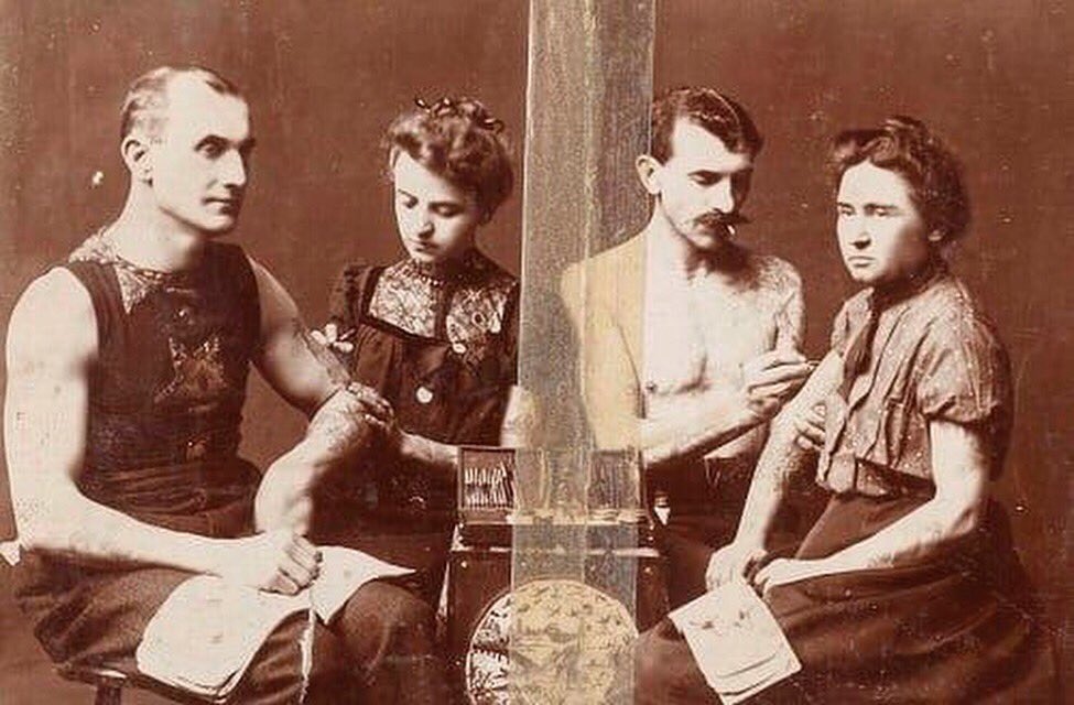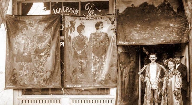 The above photo is from 1907, Gus & Maude Wagner and their tattoo parlor and sideshow in Santa Barbara.