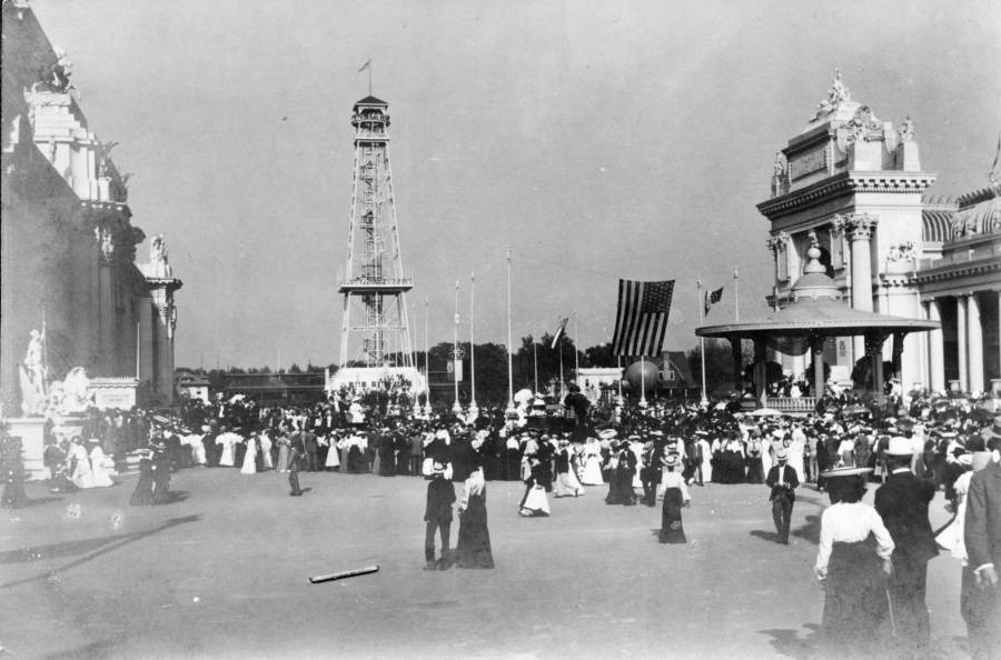 Crowds gather at the 1904 World’s Fair in St. Louis, where Maud Wagner met her future husband