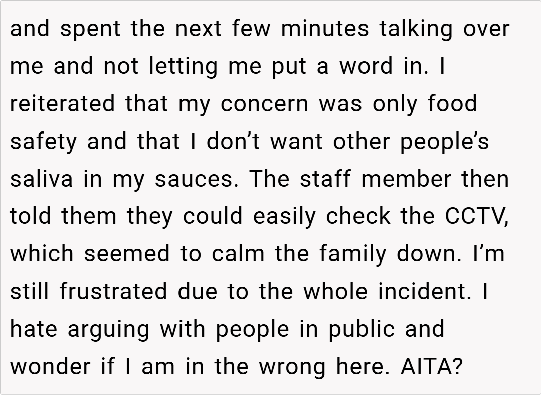What would you do if you found yourself in this sticky situation? Would you speak up directly, alert the staff, or pretend you suddenly lost your appetite and walk away? Share your thoughts in the comments below!