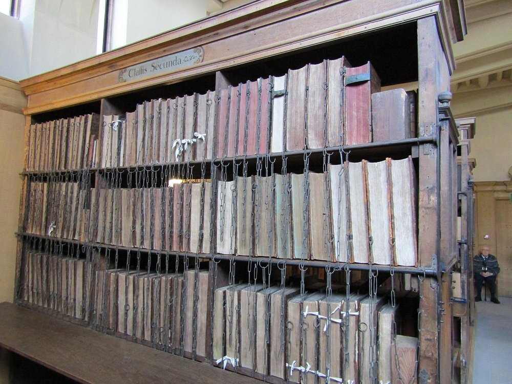 The chains allowed people to read the books at a desk but not remove them from their place on the shelf.