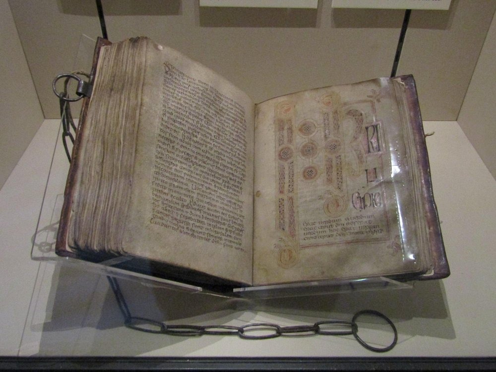 This ancient text, along with other medieval manuscripts, occupies two bays of the Chained Library.
