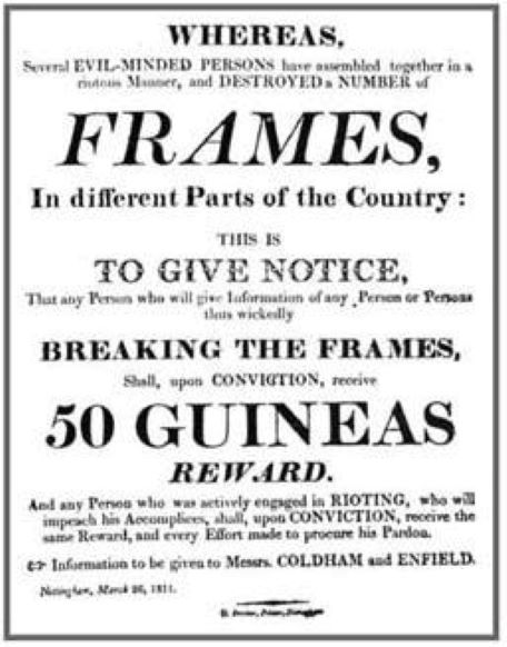 The Luddite movement got its name from a fictional leader, Ned Ludd, who supposedly destroyed weaving machinery in a rage. Protestors claimed to follow “General Ludd,” issuing manifestos and threatening letters under his name.