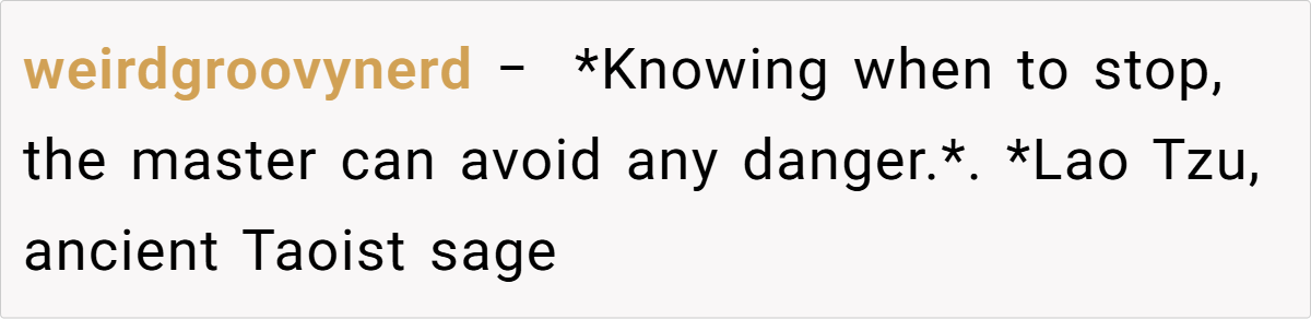 Deciding when to stop an argument can be a subtle art. This Reddit post offers an intriguing perspective on conserving energy by disengaging from fruitless debates. It suggests that sometimes, regardless of how justified you feel, your energy is better spent elsewhere. This perspective encourages us to pause, reflect, and embrace a more thoughtful way of handling conflicts that can otherwise spiral out of control.