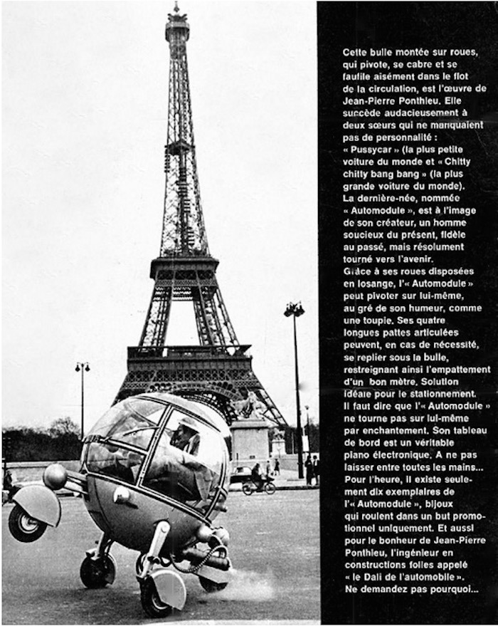 These projects, like the Pussycar and Automodule, were driven by Ponthieu’s relentless desire to create the beautiful and unusual in a world he often found banal.