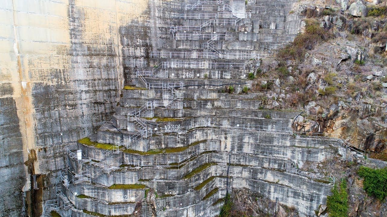 The result is a staircase that not only serves a practical purpose but also enhances the beauty of the dam and the valley.
