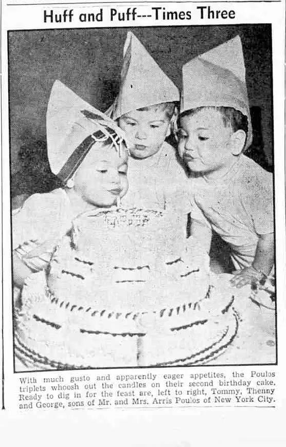 The Poulos triplets became local celebrities, with their birthdays covered in the media.