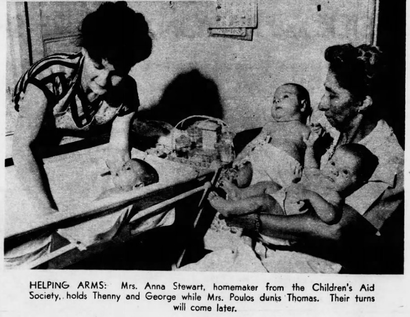 The post-war housing crisis forced the Poulos family to move in with relatives as they adjusted to life with three newborns.