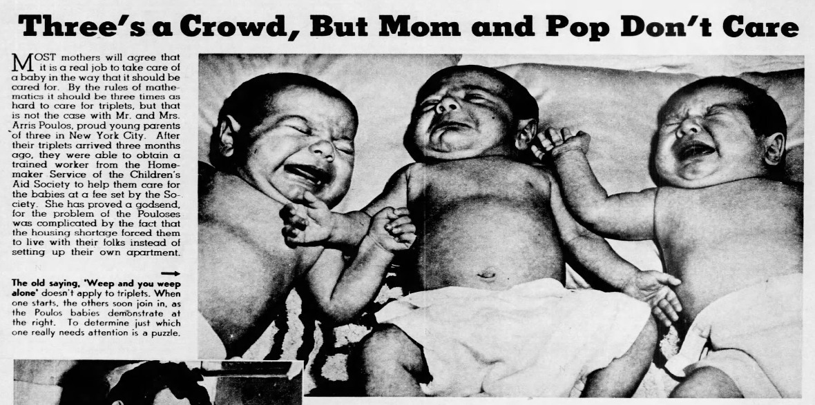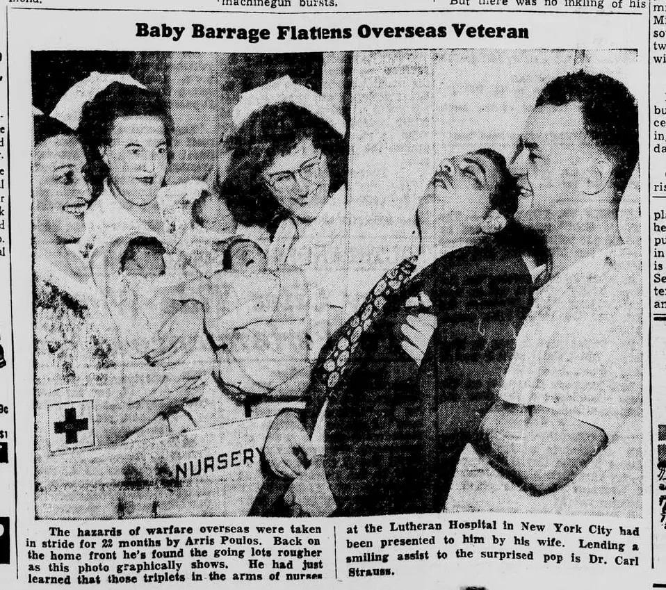 But nothing could fully prepare Arris, a 27-year-old WWII veteran, for the surprise when three boys were delivered at Lutheran Hospital in New York City.