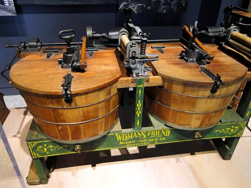 These early machines featured rotating drums and textured surfaces to assist in scrubbing clothes, making the laundry process more efficient.