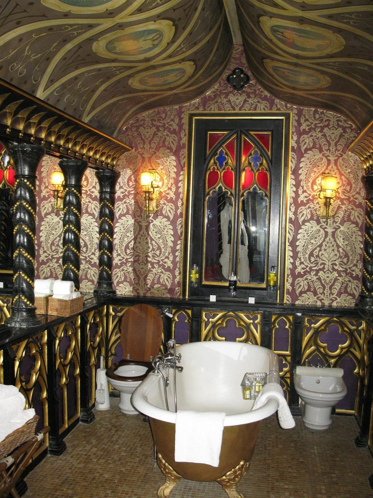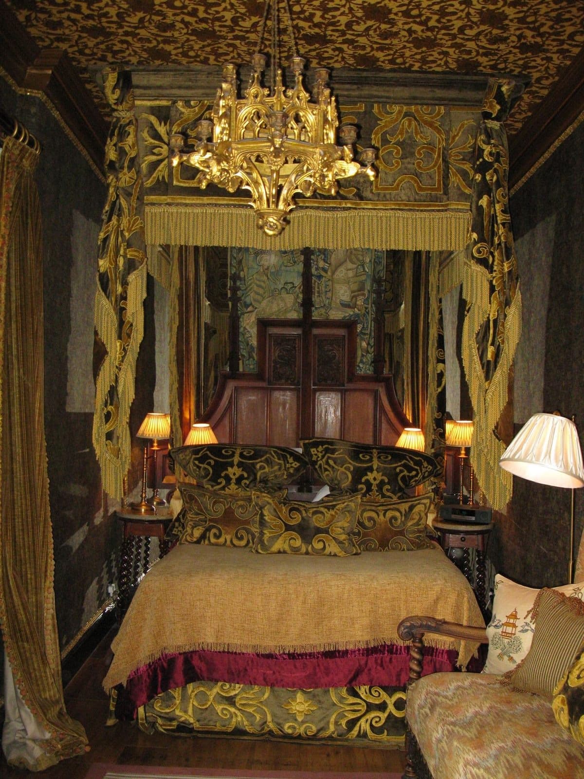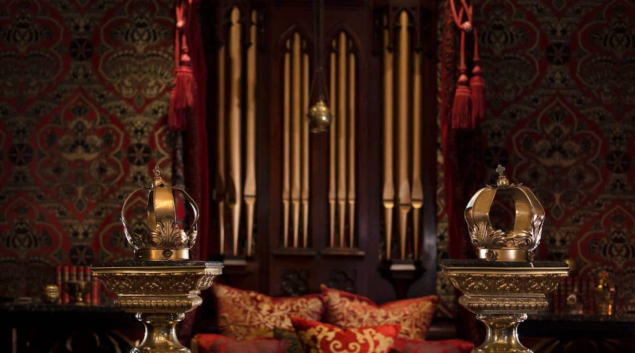 The suites’ Gothic charm includes four-poster beds, tapestries, and bathrooms reminiscent of Gothic chapels.