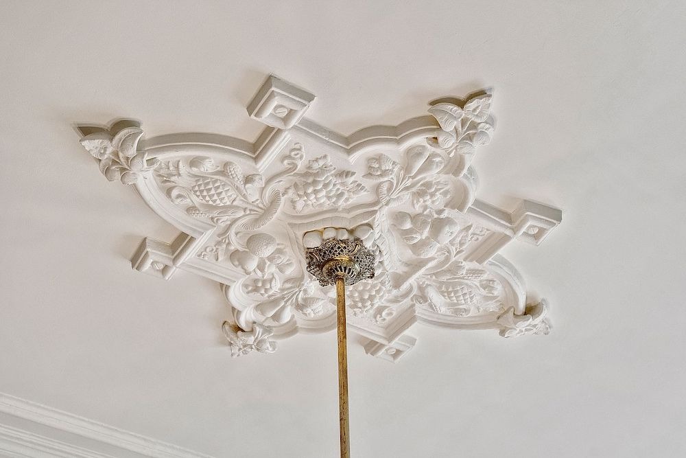 The interior is equally impressive, with 11-foot ceilings adorned with ornate crowns and plaster moldings.