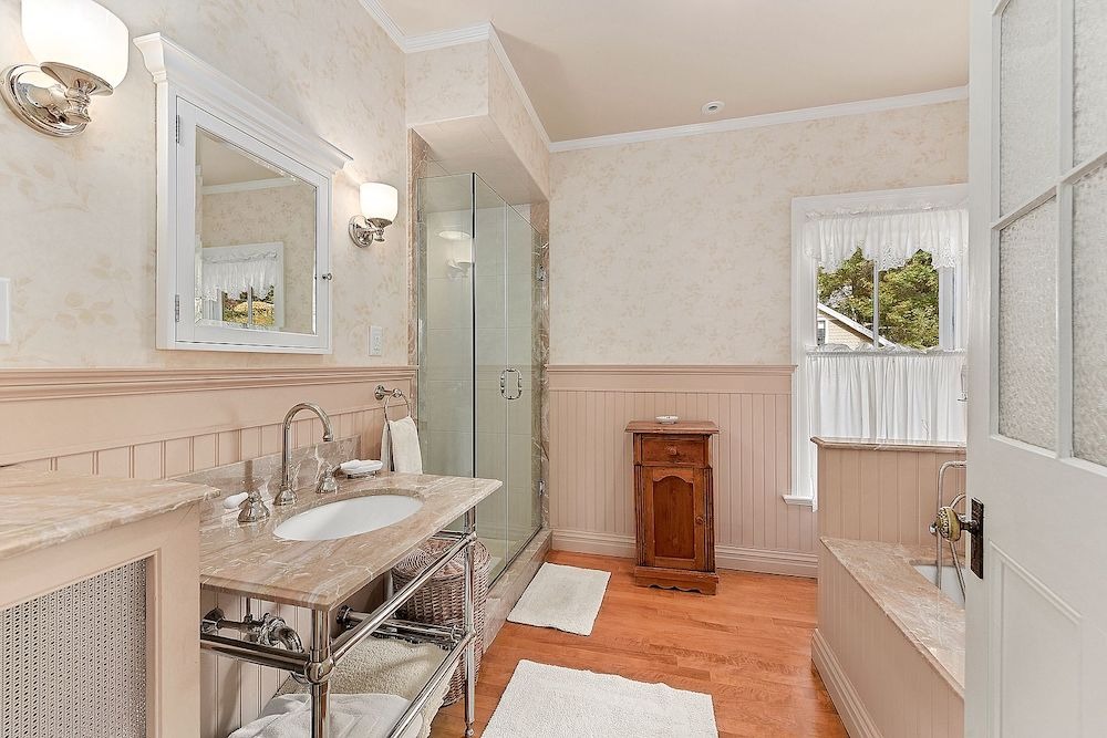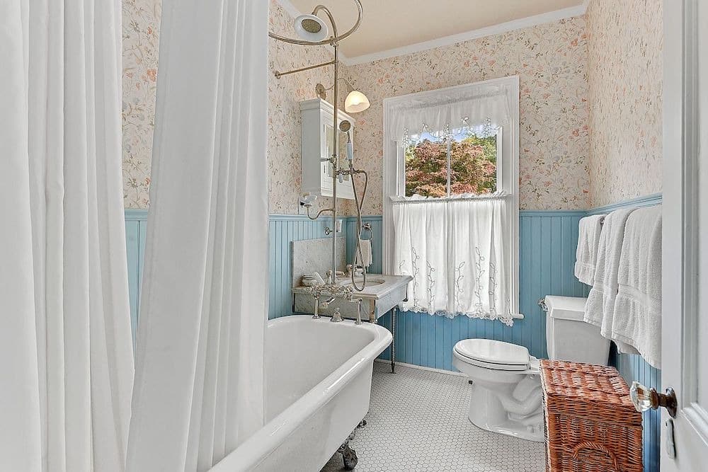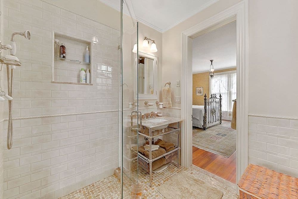 The 3.5 bathrooms feature thoughtful upgrades, such as wainscoting and period-inspired sinks, adding to the house’s timeless appeal.