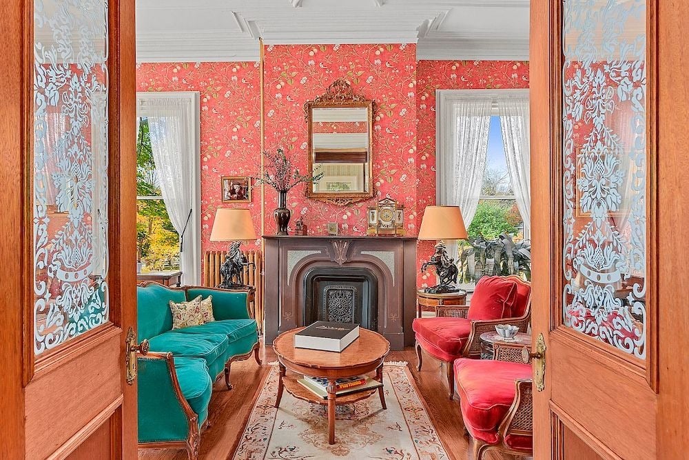 Large windows flood the parlour, living room, and dining room with natural light, highlighting the beautiful period details.