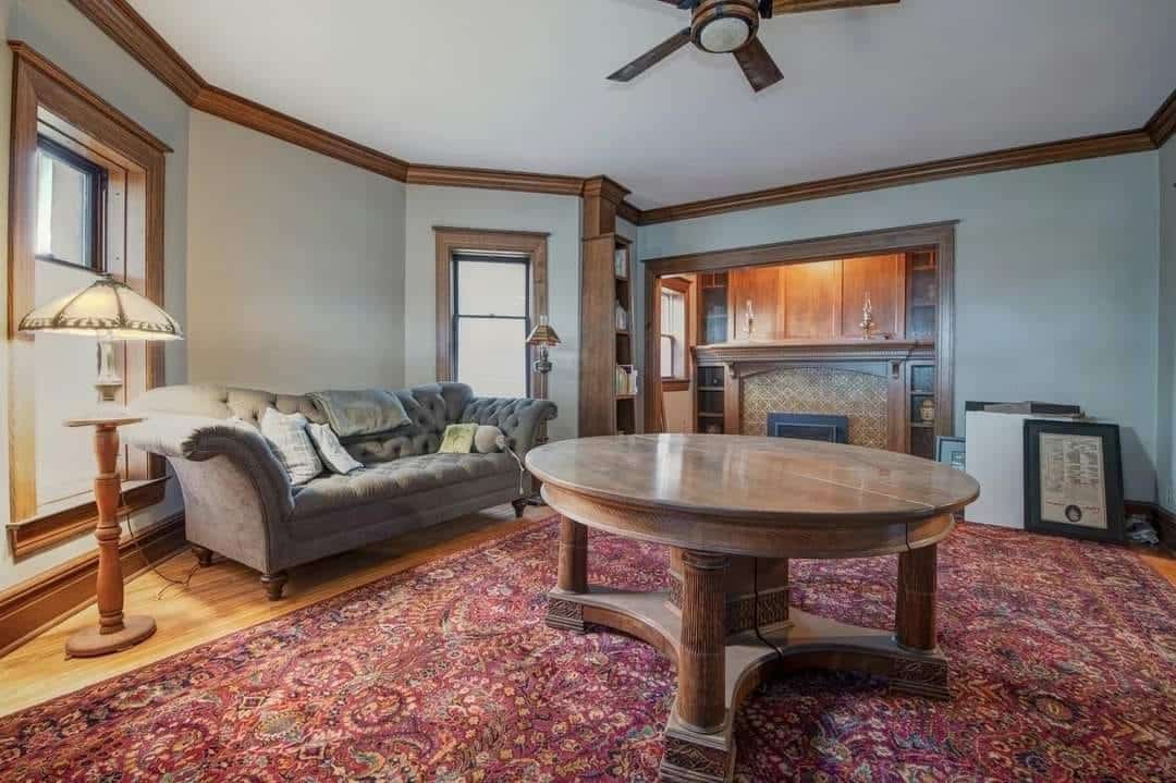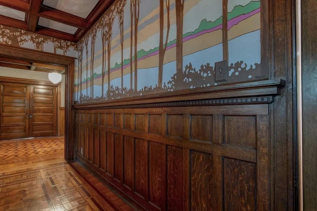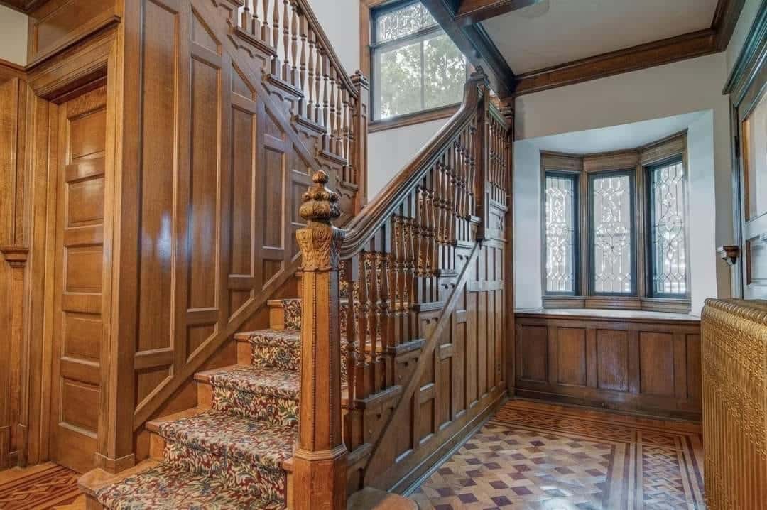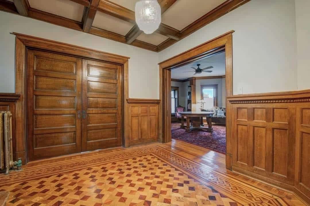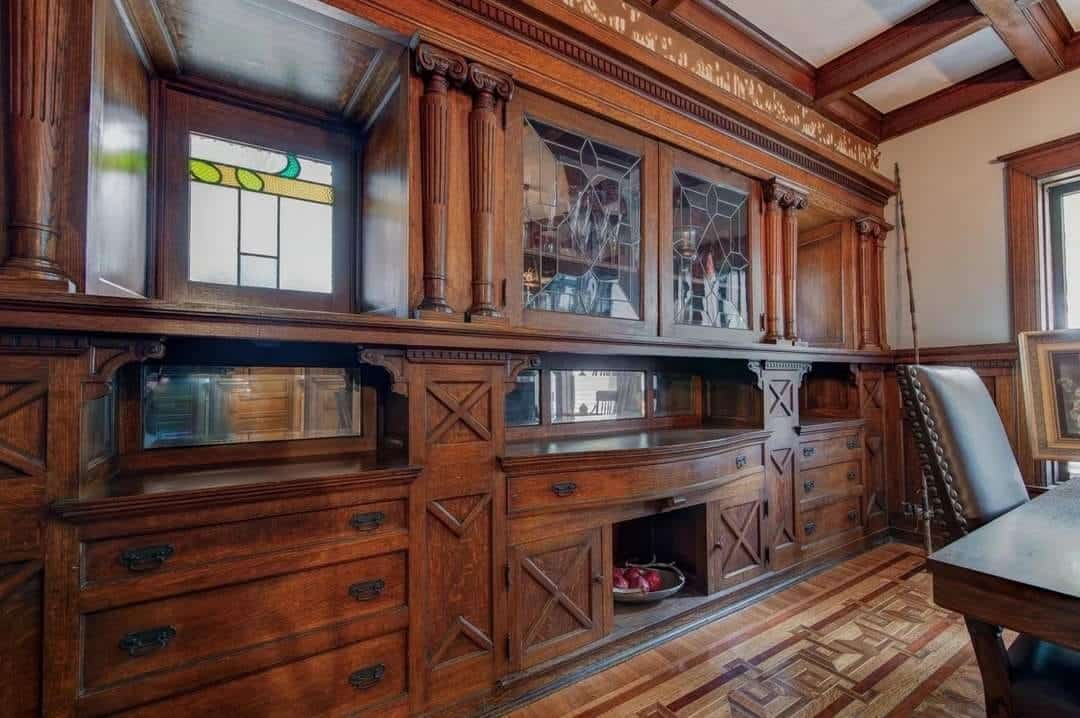 The living spaces are adorned with intricate woodwork and meticulously crafted cabinetry, showcasing the quality and attention to every detail that went into restoring this home.