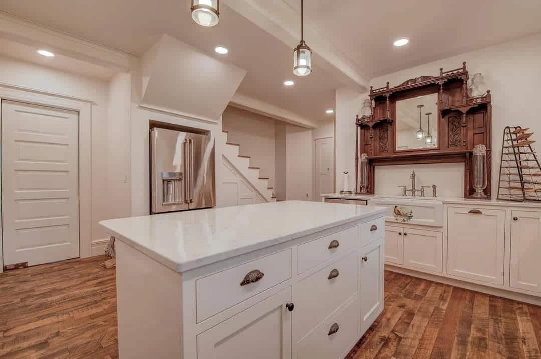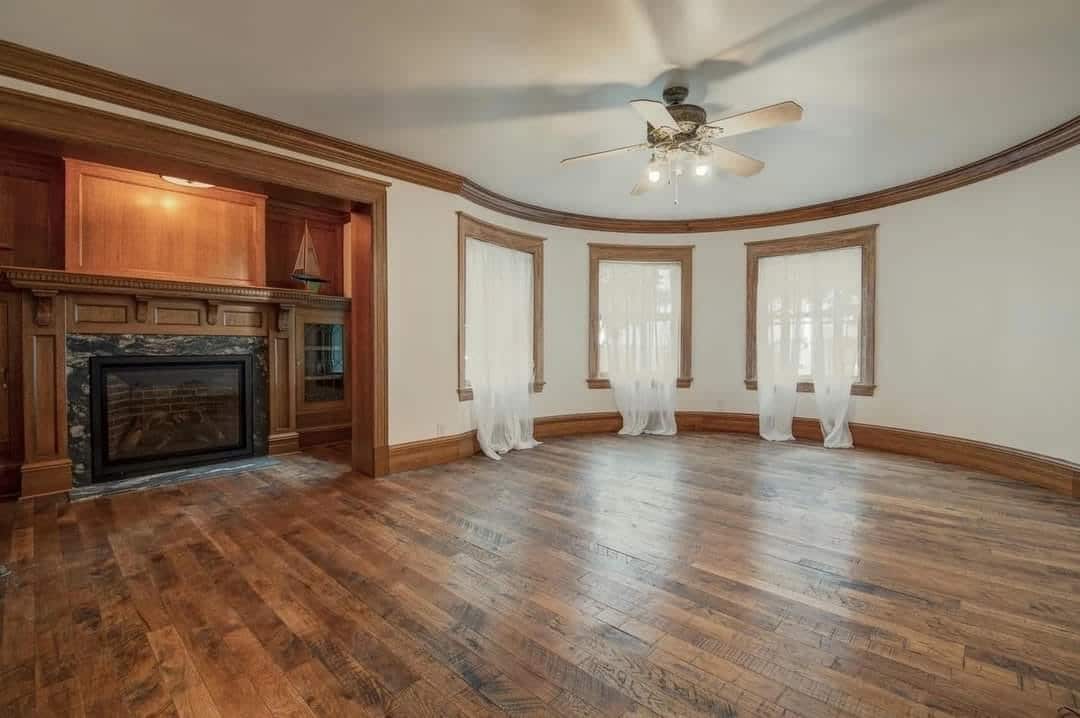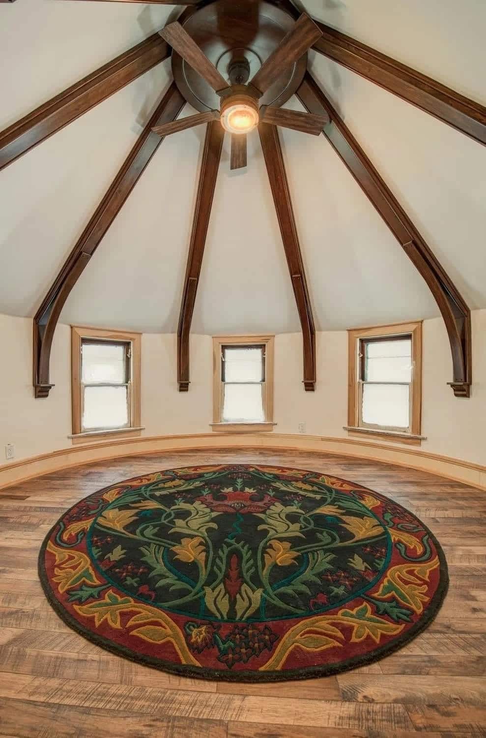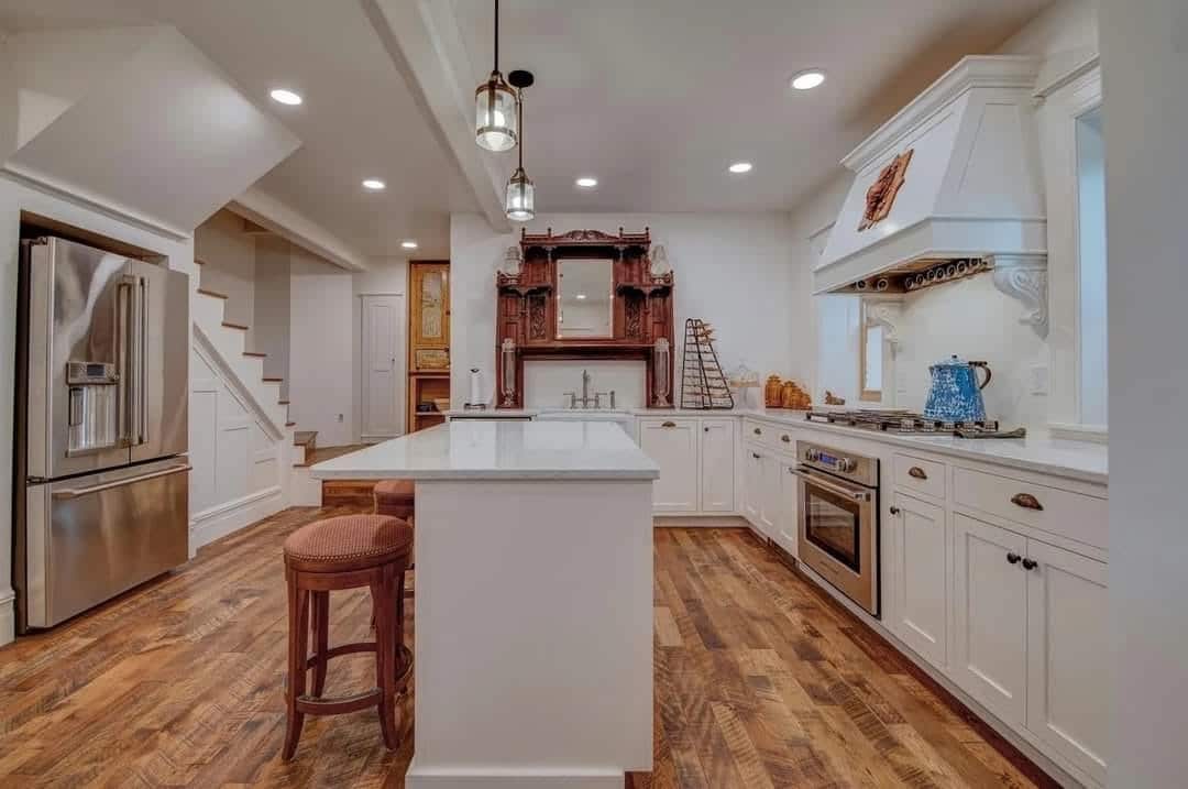 The living spaces are adorned with intricate woodwork and meticulously crafted cabinetry, showcasing the quality and attention to every detail that went into restoring this home.