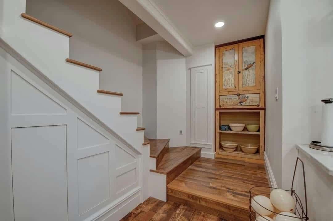 This staircase behind the kitchen wall opens up to the 2nd floor.