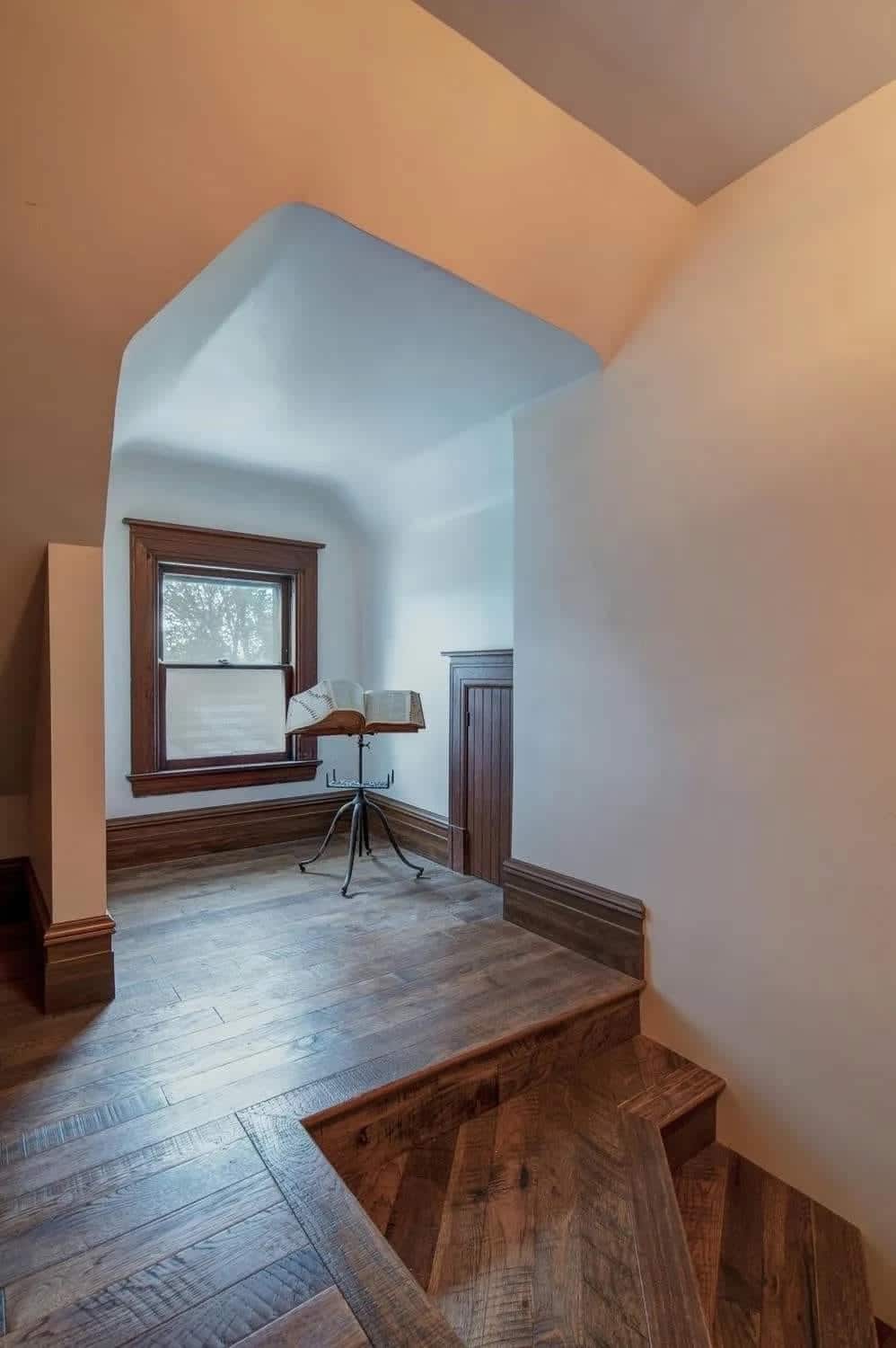 The new oak baseboards, trim, and crown molding enhance the overall aesthetic, creating a seamless blend of old-world charm and modern updates.