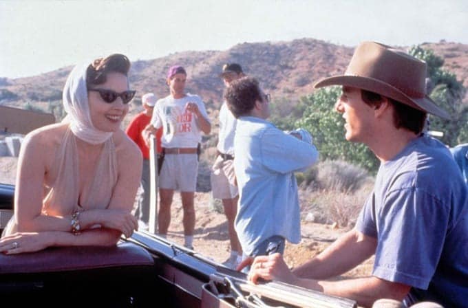 Rossellini is pictured here with director Tom Cruise on the set of American TV series Fallen Angels, 1993