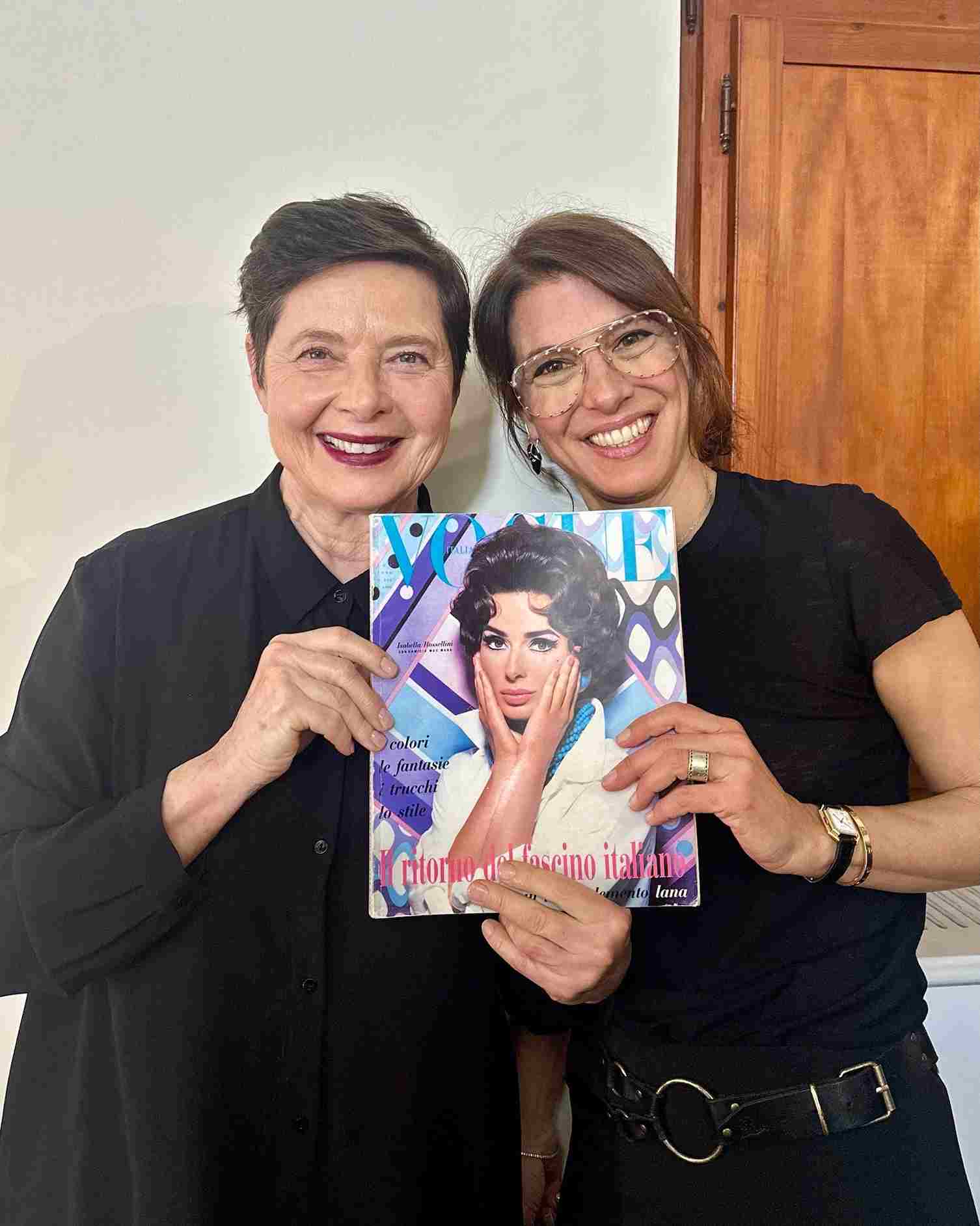 Isabella Rossellini backstage at the Pucci show with creative director Camille Miceli