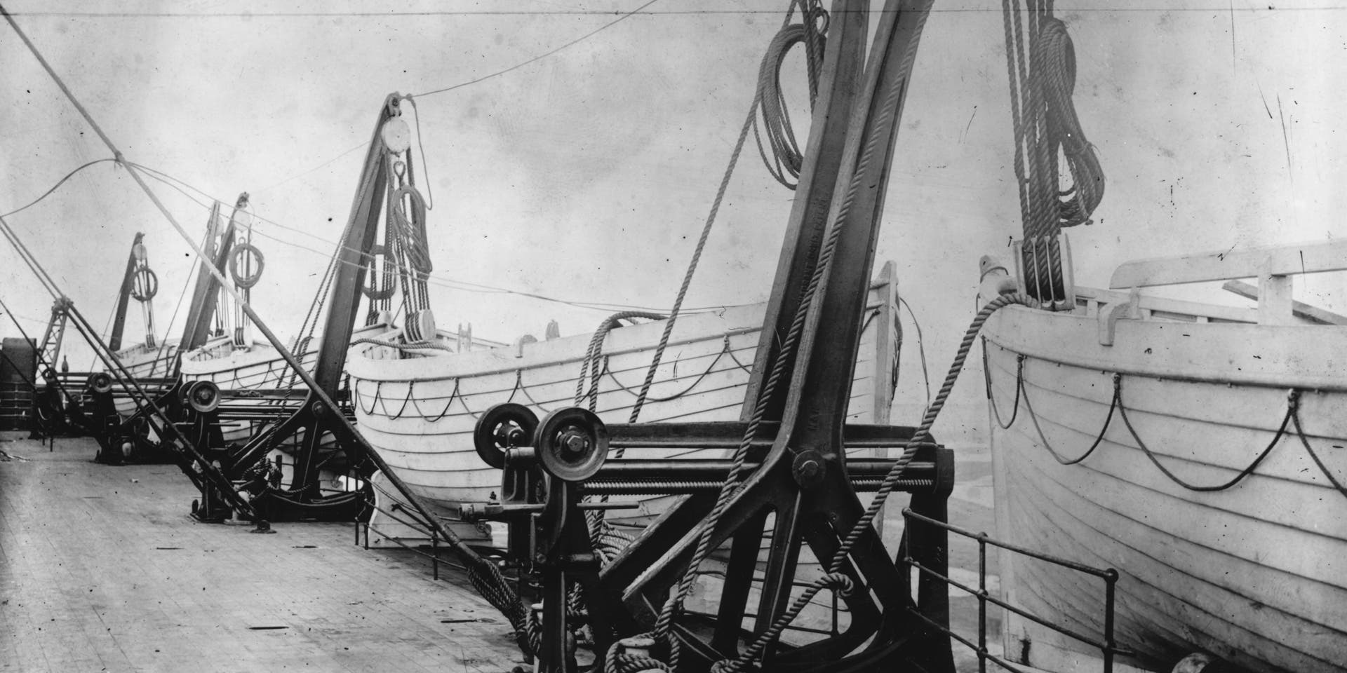 Lifeboats on board the SS Titanic. When the liner sank in the Atlantic after hitting an iceberg there were only enough lifeboats on board to hold a third of the passengers and crew.